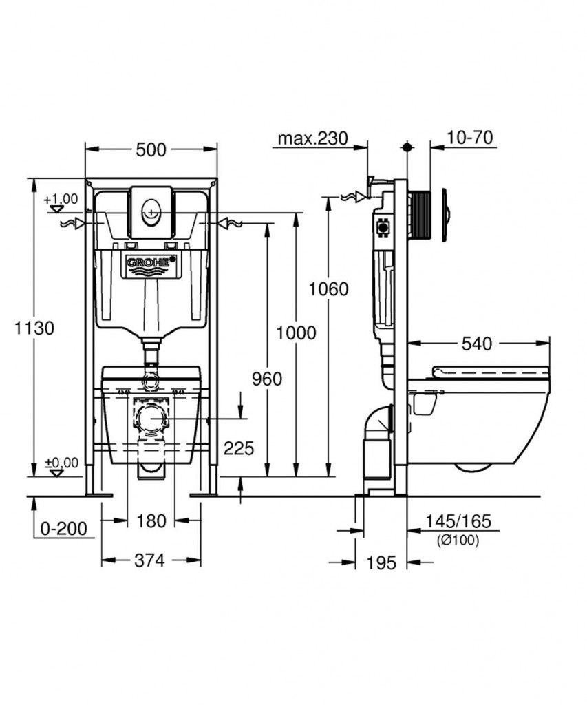 - splachovací nádrž 6 - 9 l (nastaveno z výroby na 6 l - 3 l)