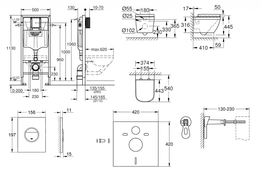 - WC keramika s plochou menší než 205 mm vyžaduje dodatečné příslušenství