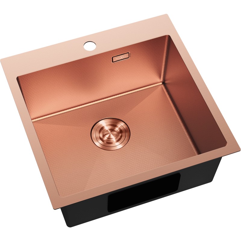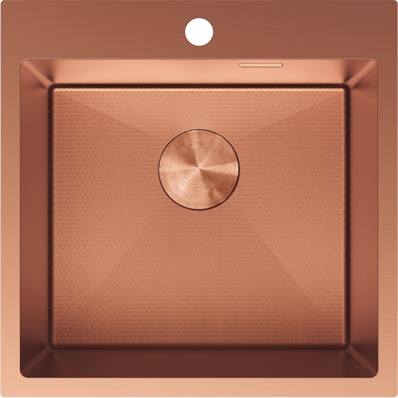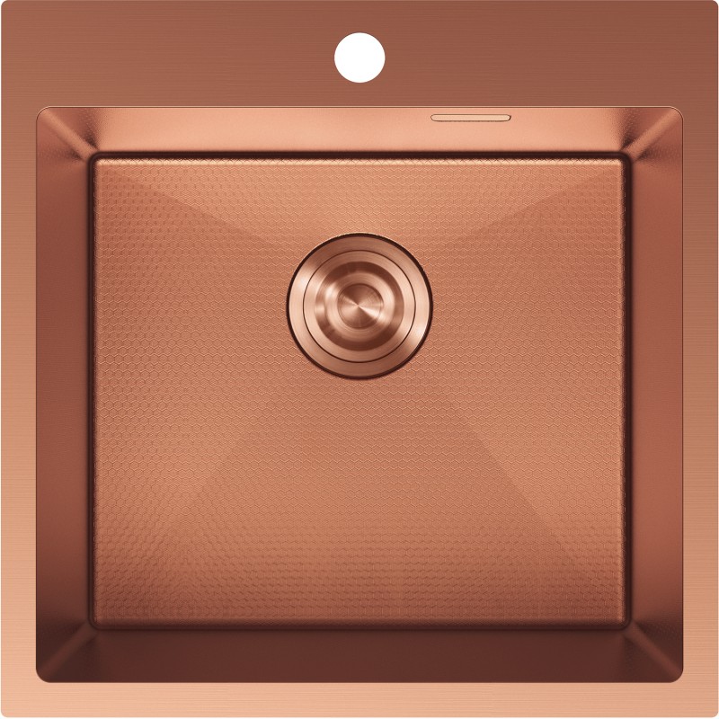 Specifikace produktu: Rozměr: 500x500x200 mm Hloubka dřezu: 200 mm Rozměry dřezu: 450x400 mm Tloušťka ocelového hran dřezu: 3 mm Tloušťka ocelového hran dřezu: 1 mm Poloměr zaoblení rohů dřezu: R10 Průměr odtoku: ø92 mm Typ: 1-dřez Typ: Vestavný Materiál: Nerezová ocel AISI 304 Barva: Měď Povrch: Voština Povrchová úprava sifonu: Měď Otvor pro přepad: Ano Otvor pro baterii: Ano Ruční sifon s odpadkovým košem a zátkou Přídavný kryt odtoku Skrytý otvor pro přepad Zvukově izolační rohože k dřezu Odolnost vůči nárazům, poškrábání a změně barvy Odolnost vůči vysokým teplotám a tepelným šokům Snadno čistitelný povrch