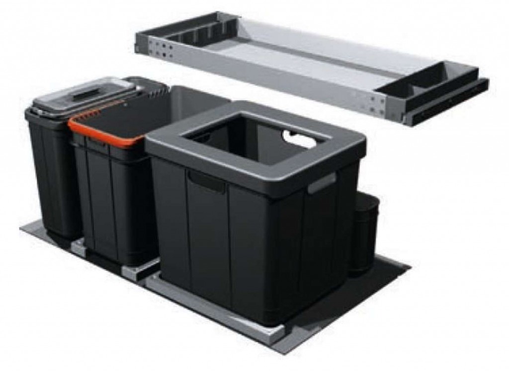 Koše řady 350, Trolley Vario a Easysort se vkládají do zásuvky s plnovýsuvem, která je osazena podélným relingem nebo vysokou bočnicí. Pro tyto odpadkové koše doporučujeme plnovýsuvy firem Blum, Grass nebo Hettich.