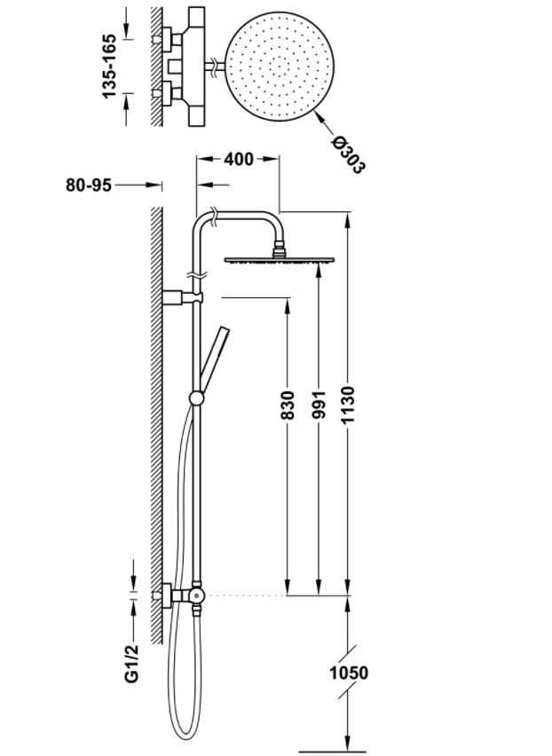 · Pevná sprcha Ø 300 mm s kloubem, materiál mosaz
