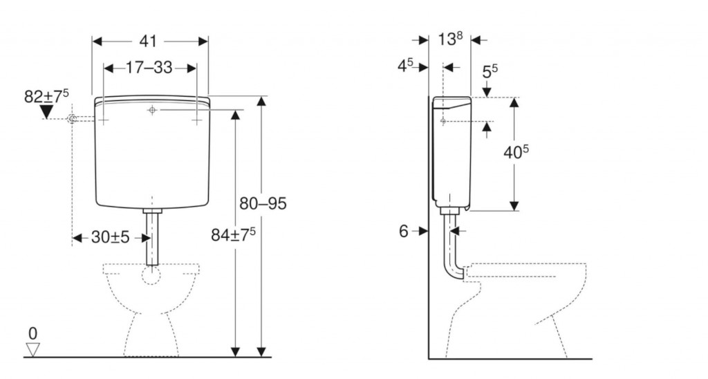 - velké splachovací množství, rozsah nastavení: 6 / 9 l