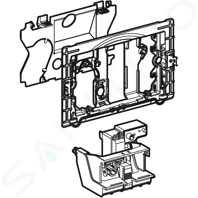Souprava pro hrubou montáž Geberit pro ovládání WC s elektronickým ovládáním splachování není součástí - je třeba objednat samostatně.