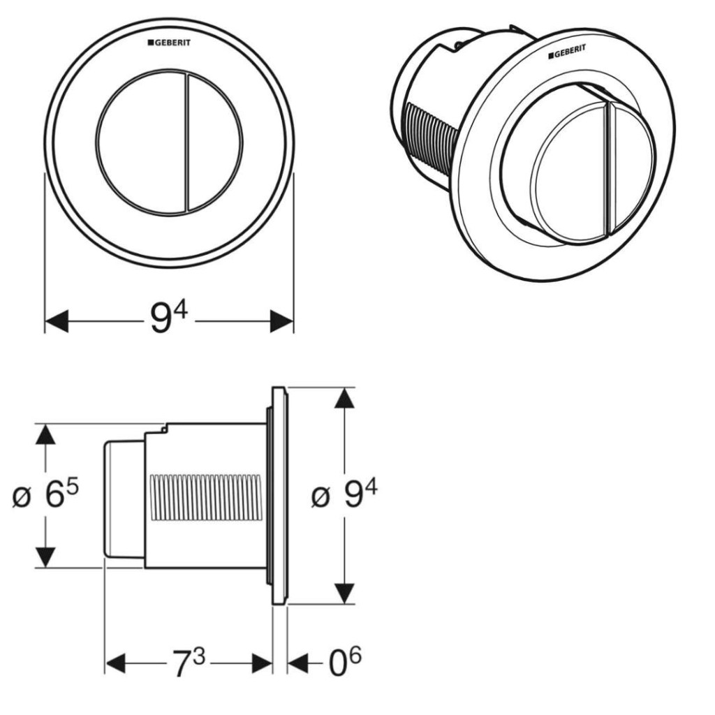 Oddálené ovládání Geberit typ 01, pneumatické, pro 2 množství splachování, pro Geberit Sigma splachovací nádržku pod omítku 8 cm, tlačítko pod omítku, vyvýšené