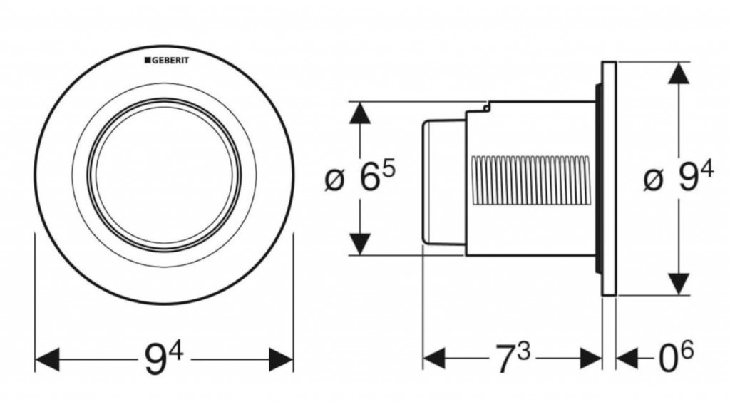 Oddálené ovládání Geberit typ 01, pneumatické, pro 1 množství splachování, tlačítko pod omítku