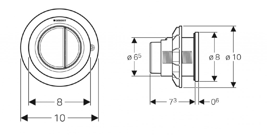 - kombinovatelný s ovládacími tlačítky Geberit pro 1 množství splachování, 2 množství splachování a splachování Start/Stop nebo krycí deskou Geberit