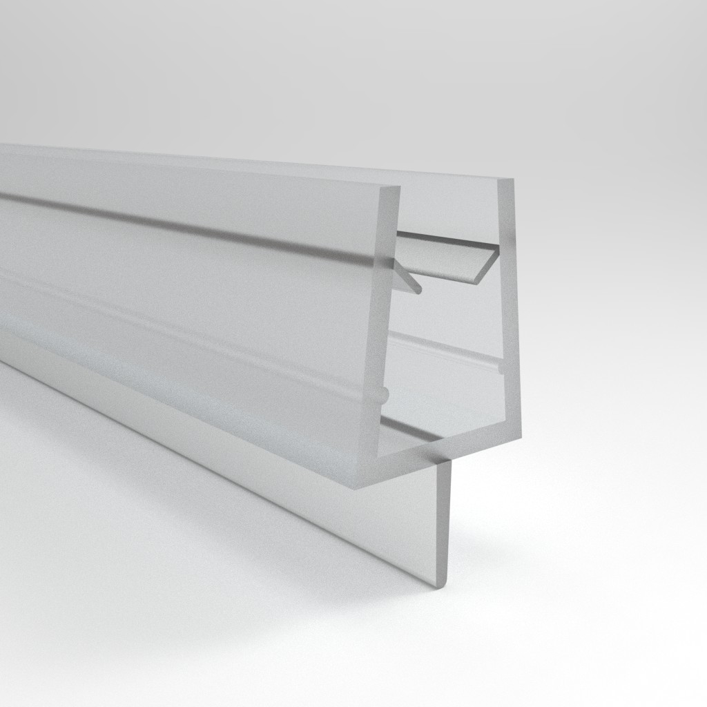 Tento silikonový těsnící profil se osazuje na spodní hranu sprchových dveří se sklem a omezuje, aby se voda při sprchování dostala do prostor mimo sprchu. Těsnící lištu lze osadit i na sklo s menší tloušťkou, jen před vlastním osazením je třeba do drážky lišty aplikovat transparentní sanitární silikon, kterým se lišta přilepí na spodní hranu skla.