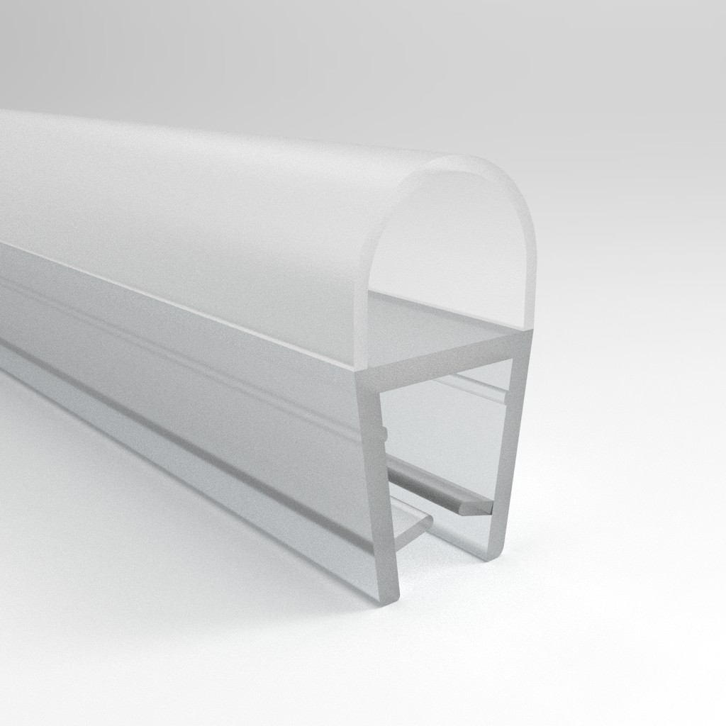 Tento silikonový těsnící profil slouží k utěsnění spodní hrany skla při styku s dlažbou (vaničkou). Těsnící lištu lze osadit i na sklo s menší tloušťkou, jen před vlastním osazením je třeba do drážky lišty aplikovat transparentní sanitární silikon, kterým se lišta přilepí na spodní hranu skla.