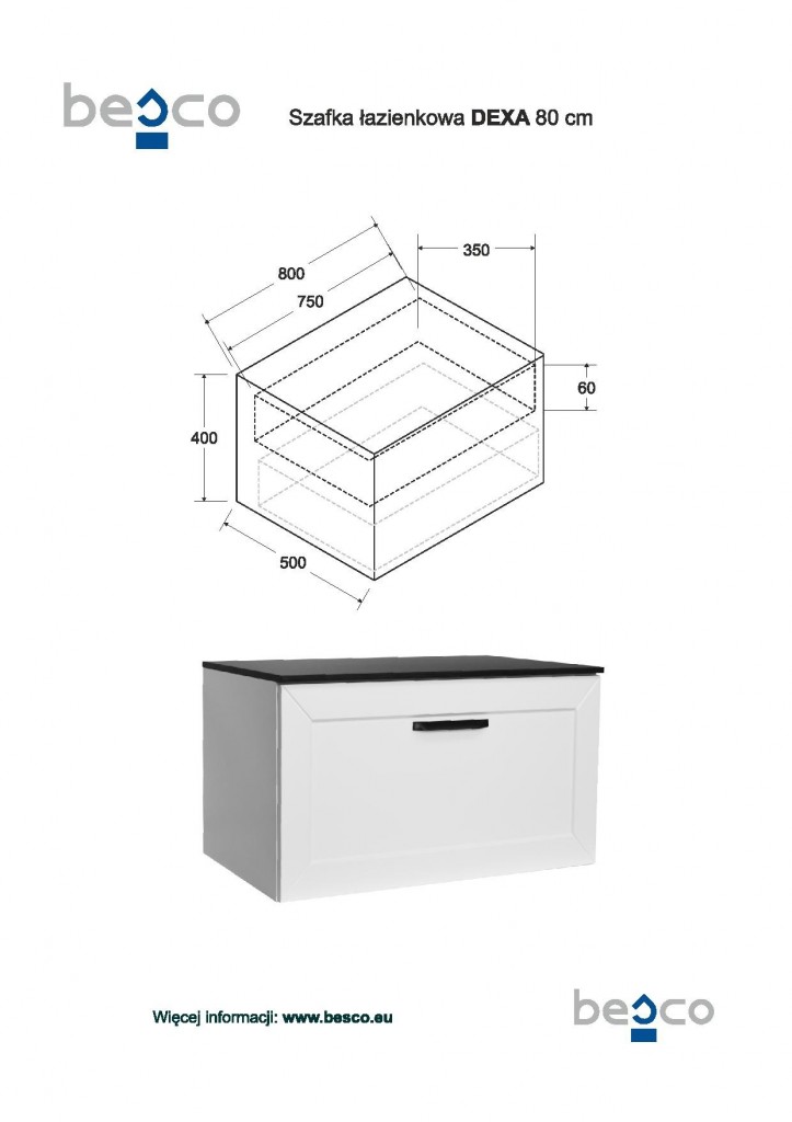Spodní skříňka DEXA s vysoce kvalitním zpracováním se dodávají bez horní desky, kterou si musíte objednat samostatně (ve dvou barevných variantách). Skříňky jsou celolakované a jsou osazeny panty s plynulým dovíráním praktických šuplíků. Skříňka je dodávaná ve dvou šířkách a ve čtyřech barvách, takže si opravdu vybere každý. Skříňky pod umyvadlo na desku DEXA jsou elegantní, výborně se hodí do moderní koupelny. Součástí nábytku je také speciální sifón určený k umyvadlu na desku.