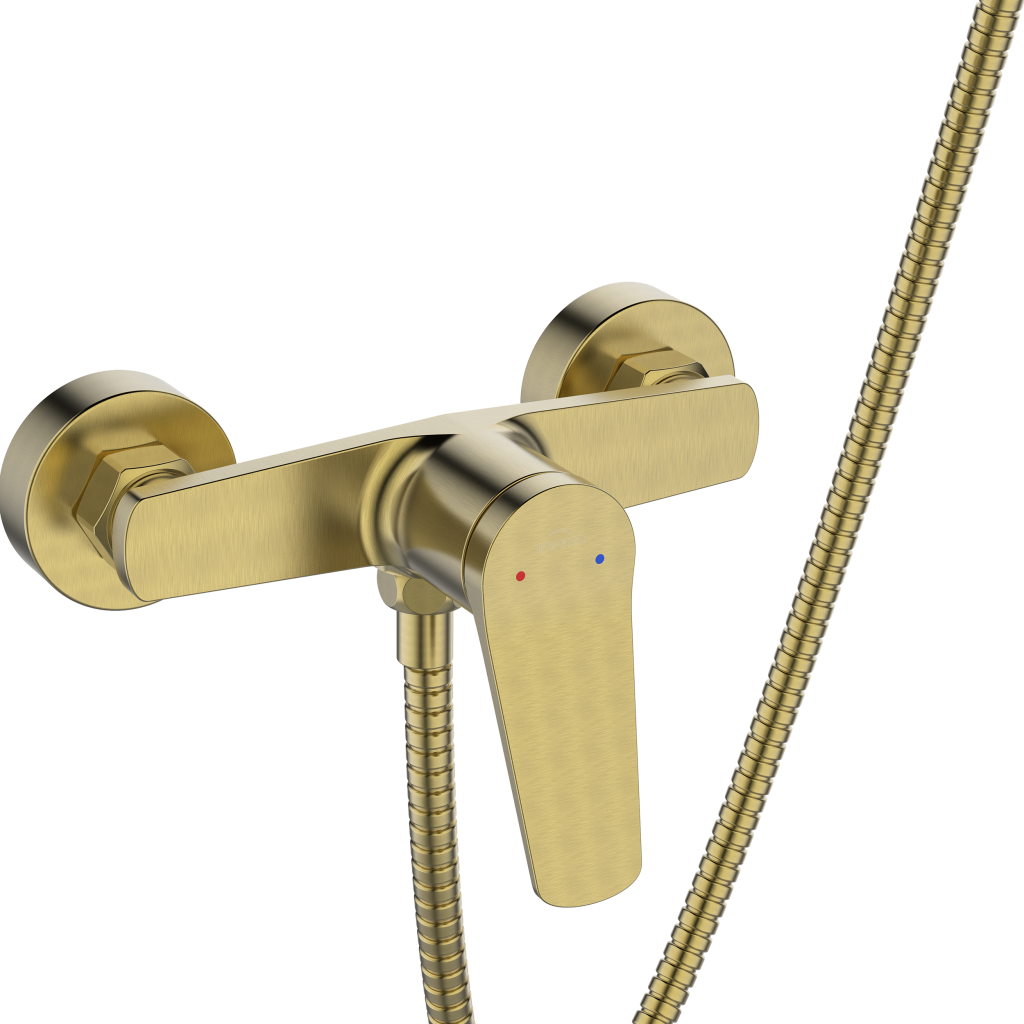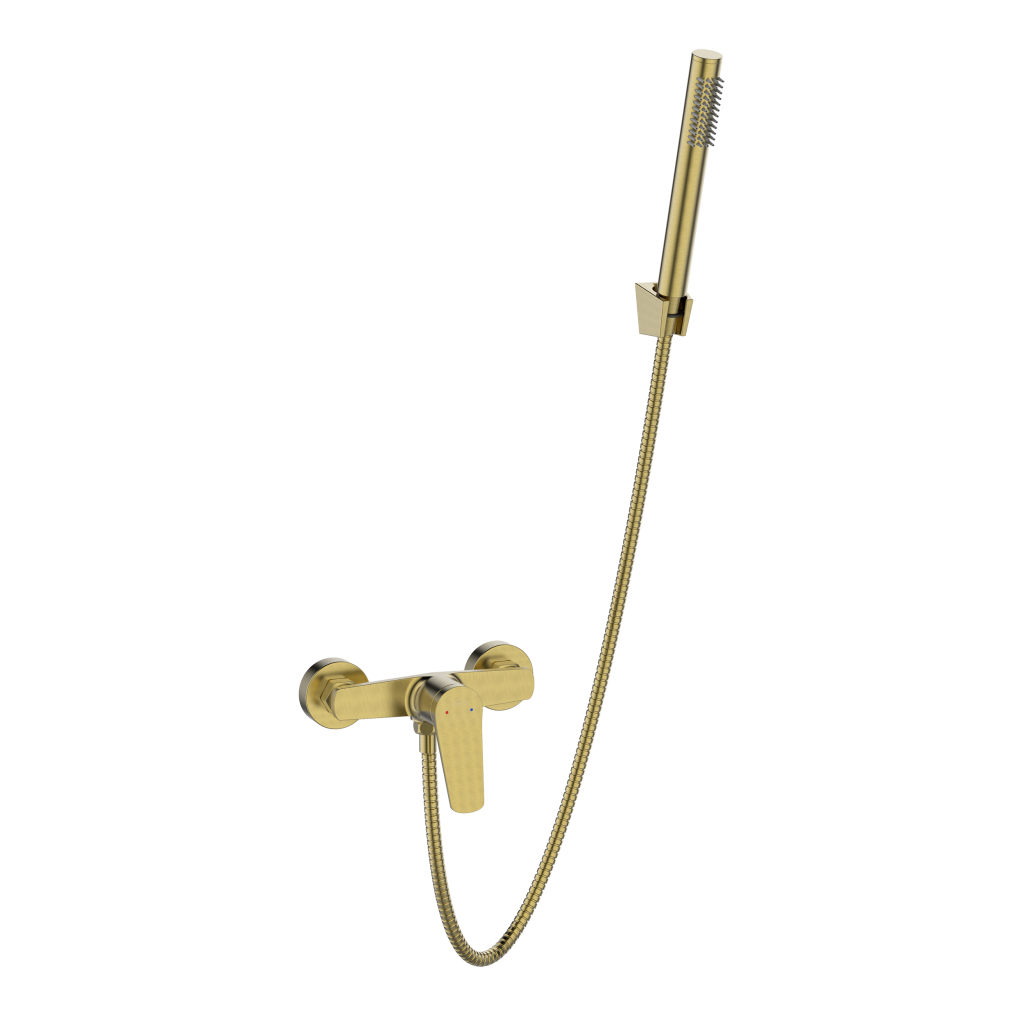 Dodá vaší koupelně eleganci se sprchovou baterií ALONIA v módní kartáčované zlaté povrchové úpravě. Tato nástěnná páková baterie se pyšní moderním stylem a vysokou funkčností. Keramická baterie o průměru 35 mm umožňuje přesné ovládání teploty a zajišťuje tak pohodlí při každém sprchování. Sada obsahuje odolnou ruční sprchu z nerezové oceli s anti-calc systémem pro snadnou údržbu. Pevná rukojeť a 150cm dvojitě opletená ocelová sprchová hadice zajišťují pohodlí a snadné použití. ALONIA je vynikající volbou pro ty, kteří si cení stylového designu a spolehlivosti. Vyberte si kvalitu a investujte do baterie, která pozvedne vaši koupelnu na novou úroveň!
