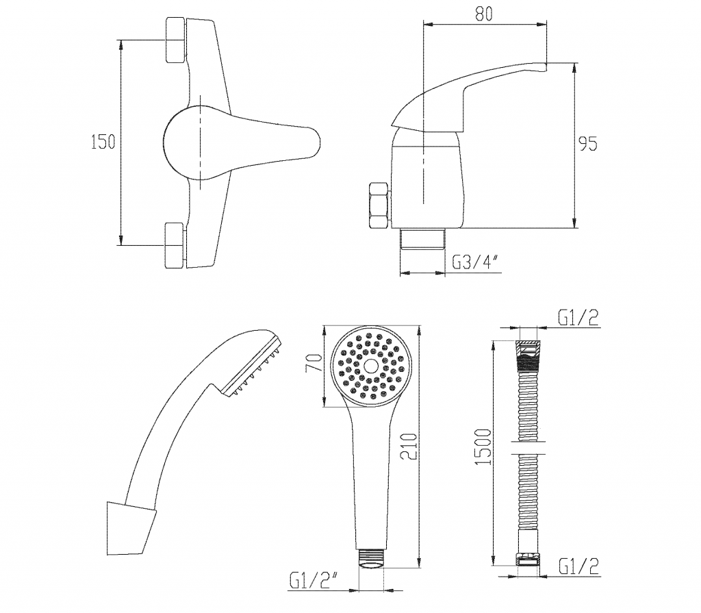 - ruční sprcha s 1-funkcí a systémem ANTI-CALC /proti usazování vodního kamene/