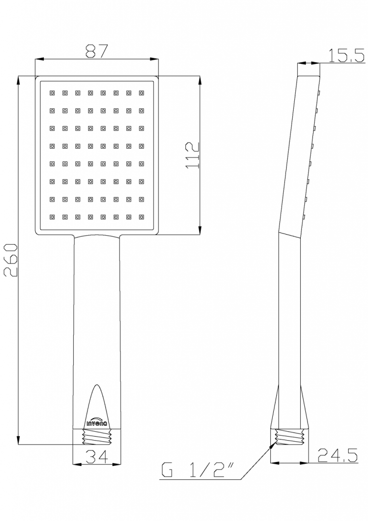 Sprchová hlavice PATRAS od výrobce INVENA je tradiční model s jedním typem trysek. Díky systému ANTI-CALC je ruční sprcha odolná vůči usazování vodního kamene a snadno se čistí.