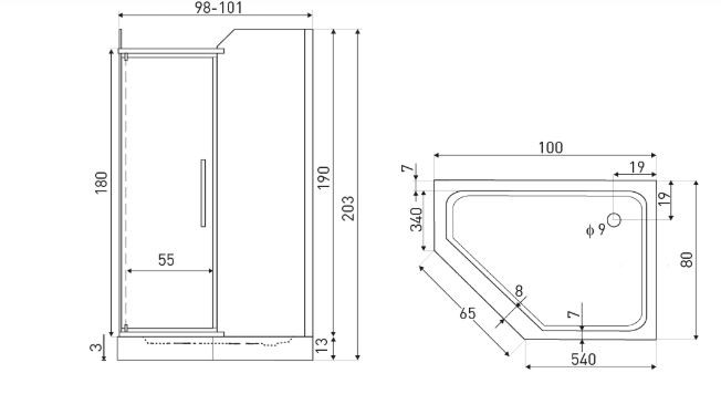 Kabinu lze montovat přímo na dlažbu nebo kombinovat s odpovídající sprchovou vaničkou (není součástí balení). Vanička je dostupná zvlášť, dle potřeby.