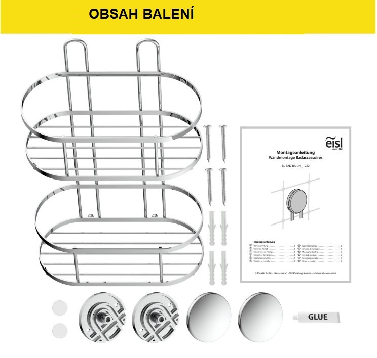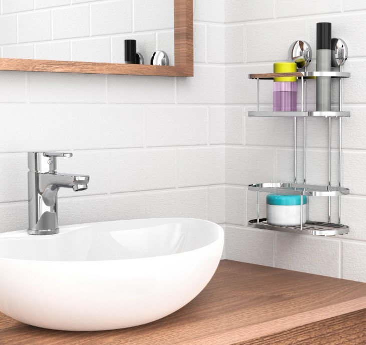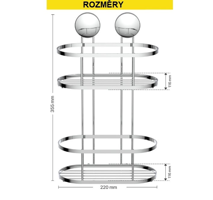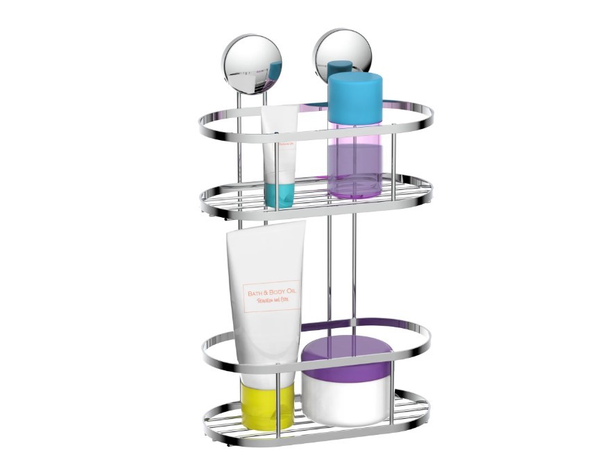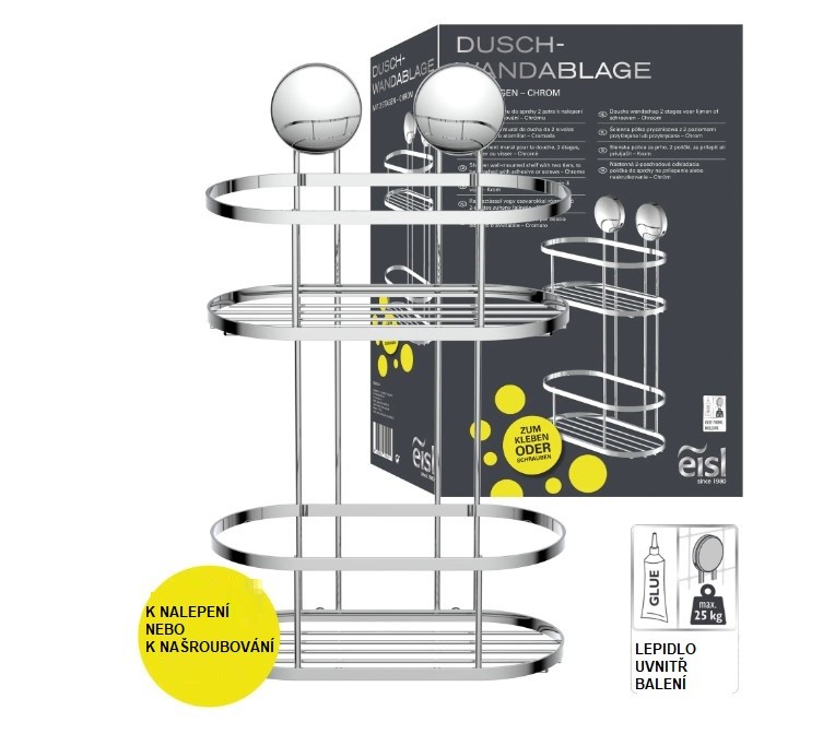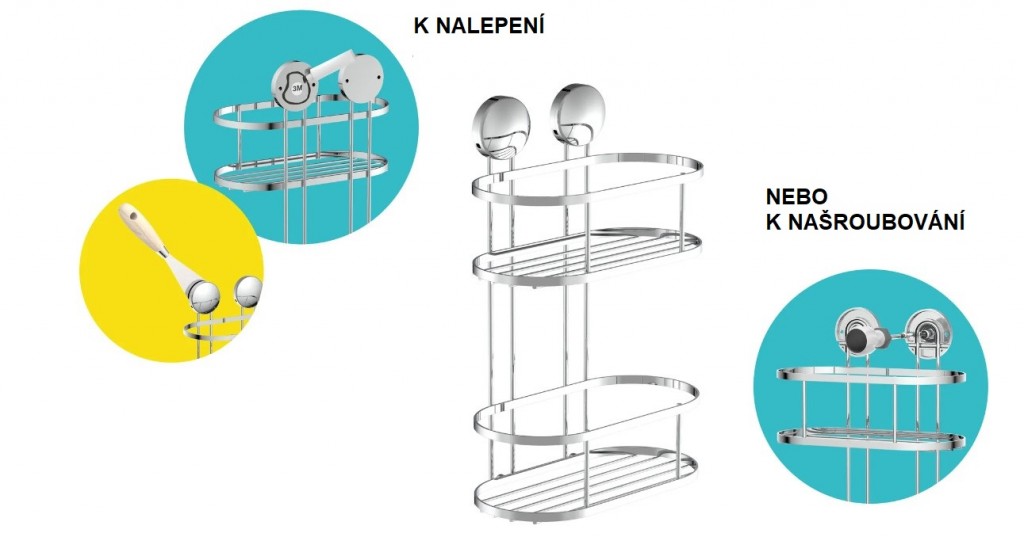 Sprchová nástěnná police 2 úrovně, chrom, k nalepení nebo přišroubování