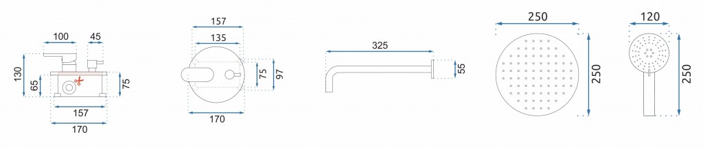 | Balení | skrytá baterie, dešťová sprcha, rameno k dešťové sprše, 1500 mm hadice, sluchátko, držák sluchátka, mřížky, box |