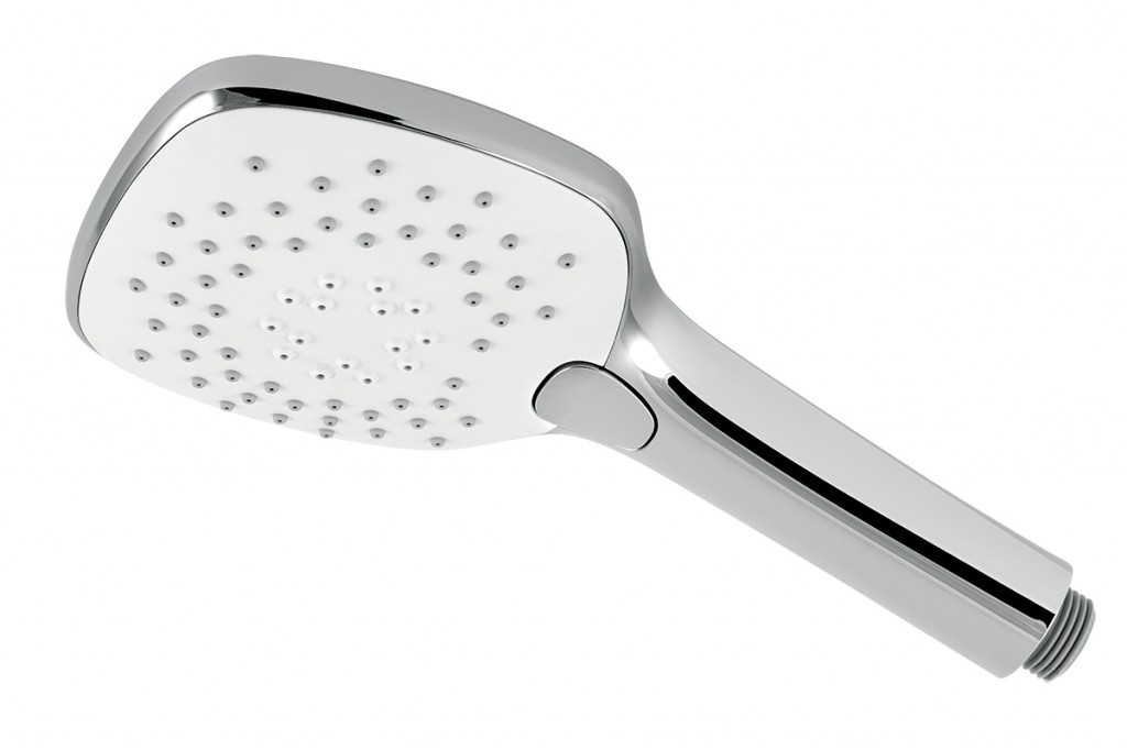 Ruční sprcha s průtokem max vody 9,5 l/min, možnost přepínání poloh v chromovém provedení s EASY CLEAN systémem, který usnadňuje čištění trysek od vodního kamene. Hranatý tvar.
