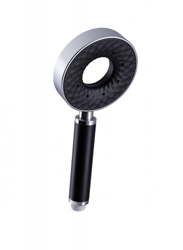 Sprchová růžice třípolohová LUNA v moderní černé barvě se svým ergonomickým designem a výběrem ze tří luxusních proudů, přináší všechny benefity z lázní do Vaší koupelny. Normalní sprcha poskytuje osvěžující efekt, Jet sprcha je energická, stimulující pokožku, zatímco Champagne sprcha je měkká, provzdušněná miliony drobných vzduchových bublinek.