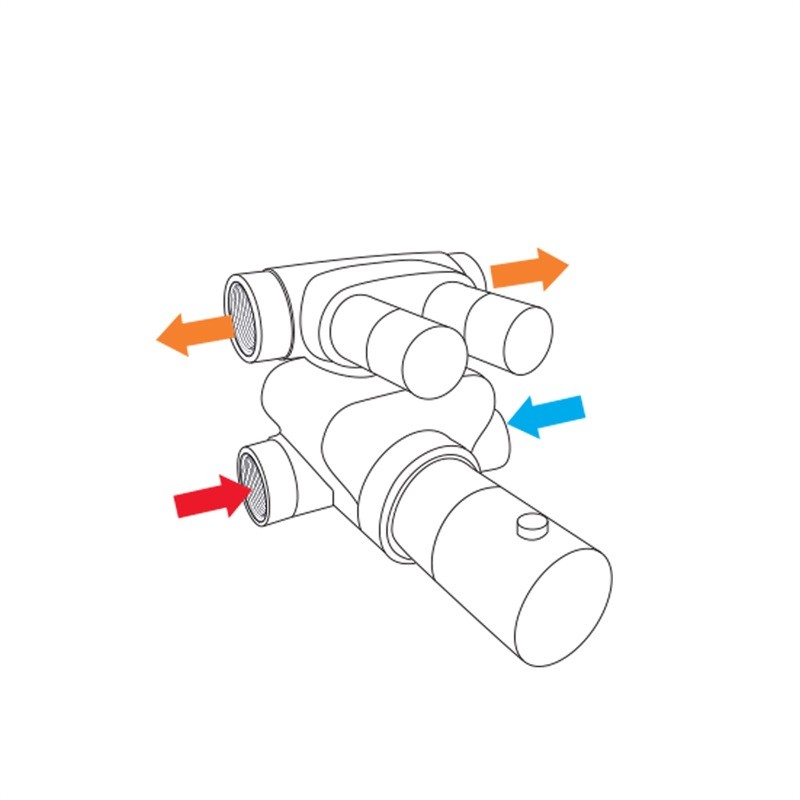 Dvoucestná varianta (přepínání dvou poloh tlačítkem) je určena do sprchových koutů s ruční a hlavovou sprchou nebo k vaně s napouštěním přepadem a možnosti sprchování.