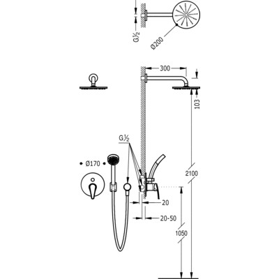 - Pevná sprcha průměr 200 mm s kloubem (299.632.12)