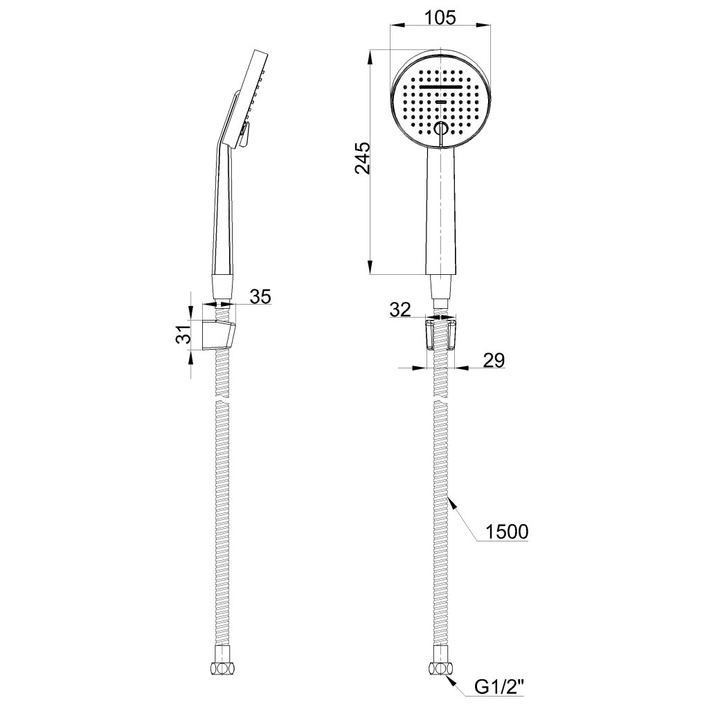 Kulatá sprchová hlavice nabízí dvě funkce proudu – klasický a kaskádový – které zajišťují příjemný a relaxační sprchový zážitek. Součástí hlavice je také integrovaný systém provzdušňování vody, který snižuje spotřebu a přispívá k ekologickému provozu bez kompromisu v komfortu a sprchová hadice dlouhá 1500 mm.