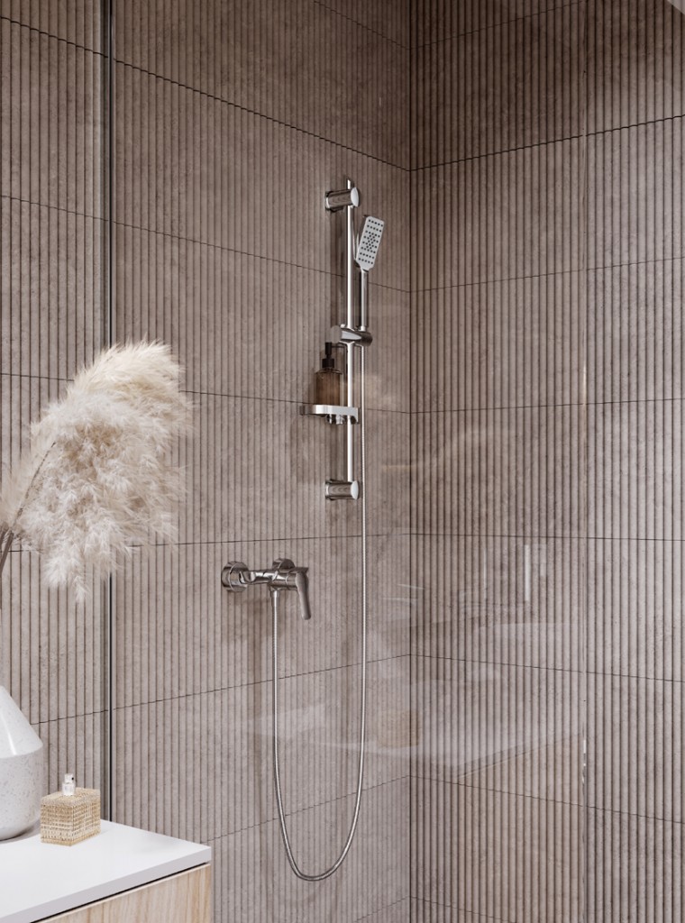 Kvalitní sprchová tyč s velkým rozsahem umístění montážních otvorů.