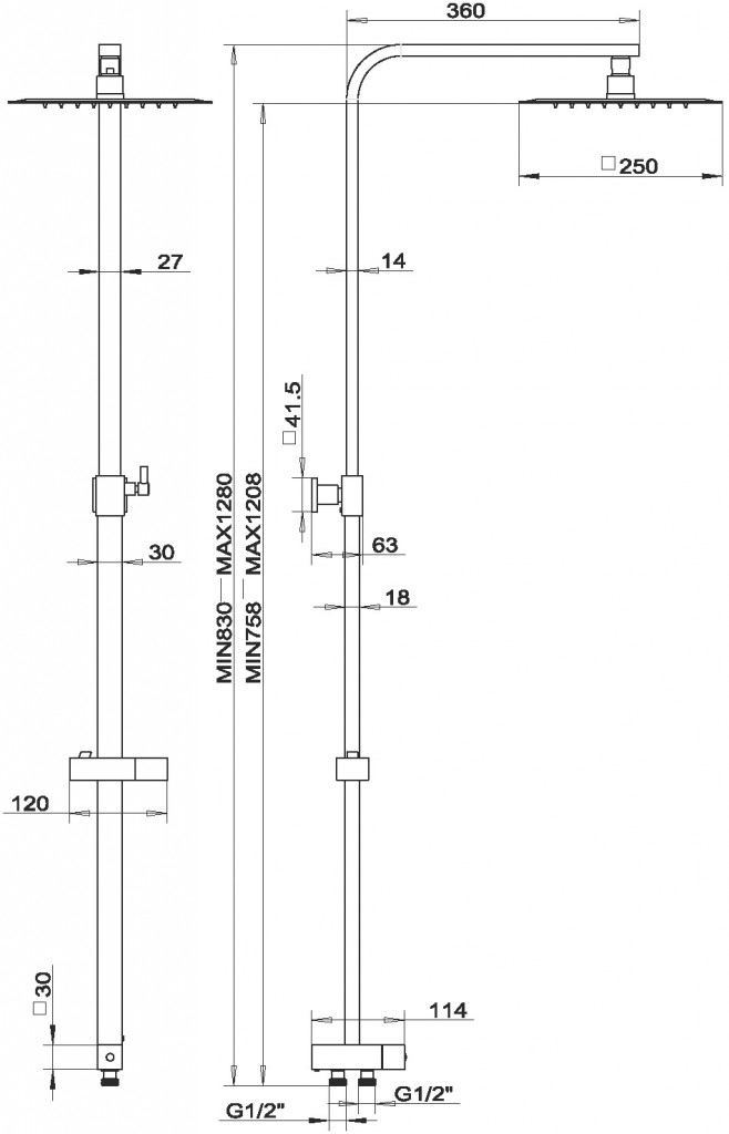 Prvotřídní provedení černá-mat. Set je vhodný pro připojení k vanové nebo sprchové baterii se spodním vývodem. Součástí balení je hlavová sprcha ve SLIM DESIGN s průměrem 250 x 250 mm, hadice 150 cm a 1-polohová ruční sprcha. Nastavitelná výška setu je 830 - 1275 mm. Součástí balení je připojovací hadička v délce 70 cm.Parametry