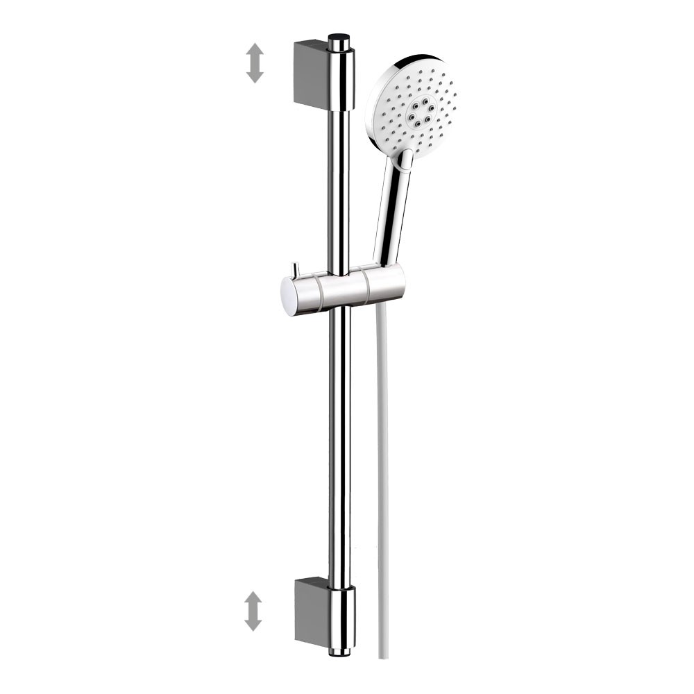 Díky posuvnému jezdci si můžete výšku sprchy nastavit dle potřeby. Kotvící držáky nejsou pevně spojené s tyčí a je tedy možné je na tyči posunout a využít děr po předchozím držáku ve Vaší koupelně.