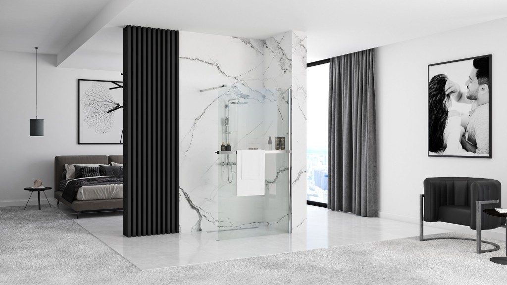 Základem sprchové zástěny je pevná stěna z 8mm tvrzeného skla, kterou výrobce ošetřil nano vrstvou EASY-CLEAN. Ta usnadňuje stékání kapek po povrchu, takže na skle nezůstávají nevzhledné mapy tvořené vodním kamenem. Pro ještě snazší údržbu doporučujeme po každém koupání použít stěrku na sklo.