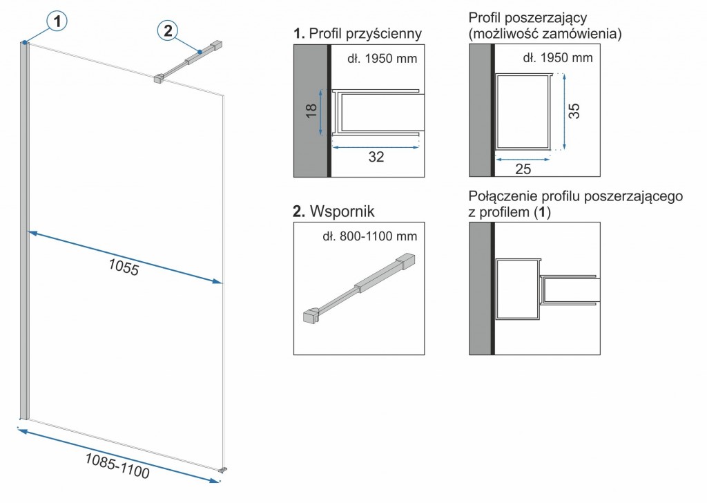 - Horní část je jištěna výsuvnou konzolí, kotvenou do stěny, pomocí které nastavíte požadovanou velikost sprchového koutu.