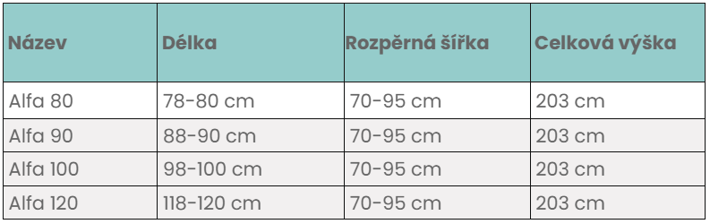 - výška 200 cm, šířka 100 cm, hloubka nastavitelná pomocí vzpěry 70-95 cm