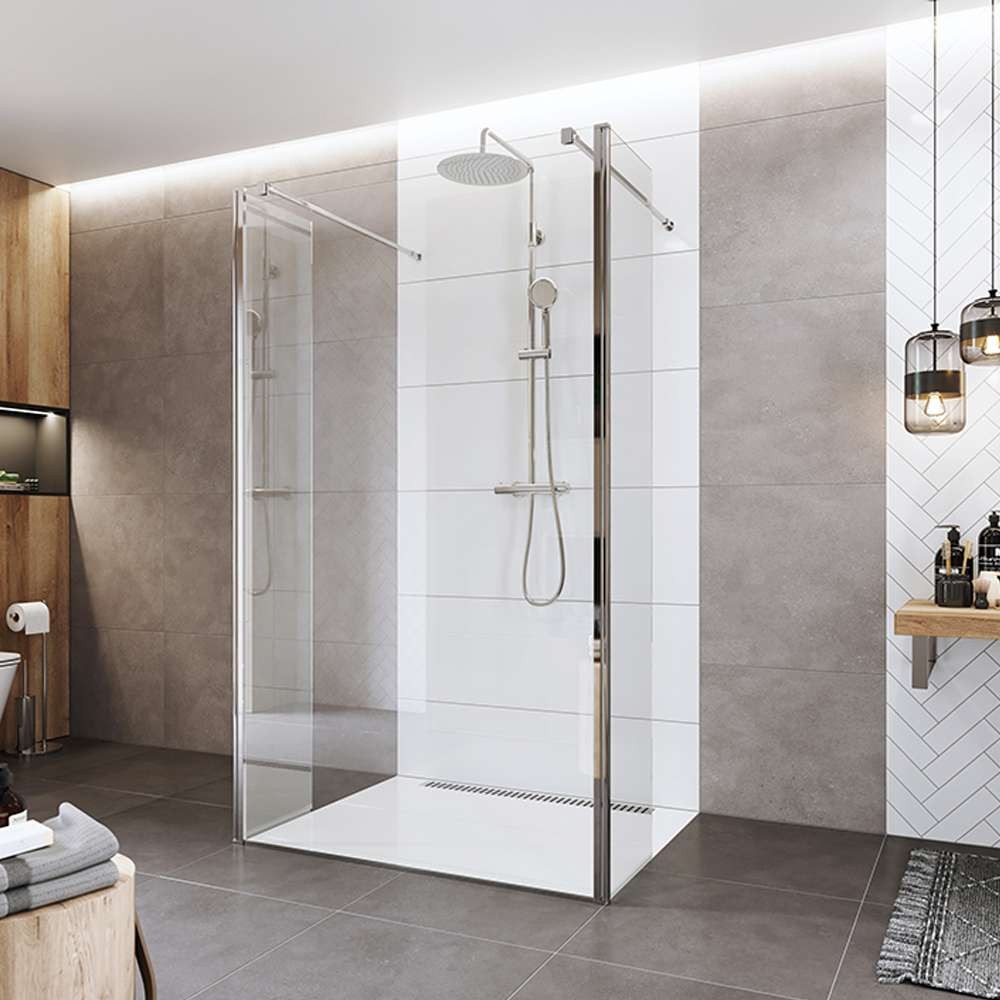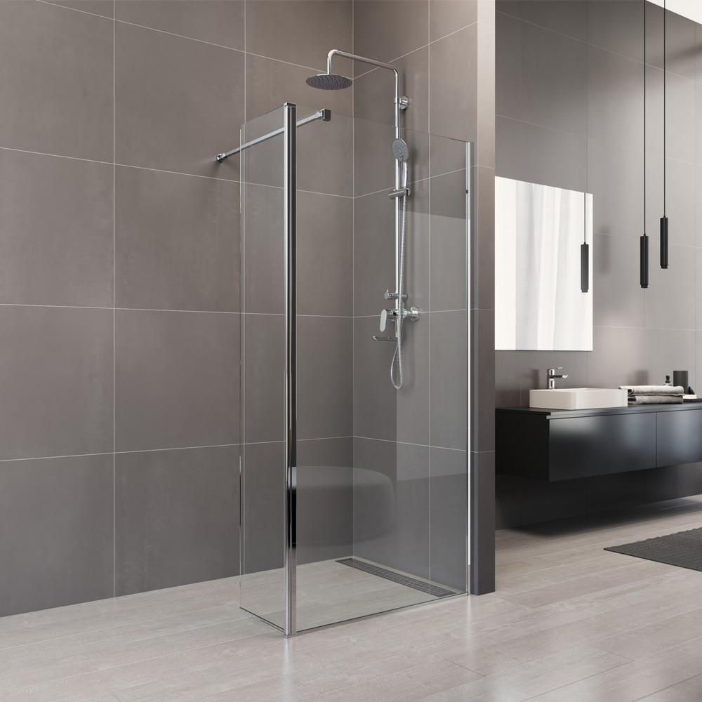Sprchové stěny WALK IN jsou jediné, které se vám opravdu přizpůsobí. Sestavte si svůj sprchovací prostor na míru. Sprchový kout typu WALK IN si můžete poskládat v několika možných kombinacích. Stabilitu bezpečnostní skla zajišťuje elegantní kovová vzpěra a v případě montáže na zeď i boční stavitelný profil, které nenarušují designovou čistotu celého koutu, nejedná se však o hermeticky uzavřený výrobek.