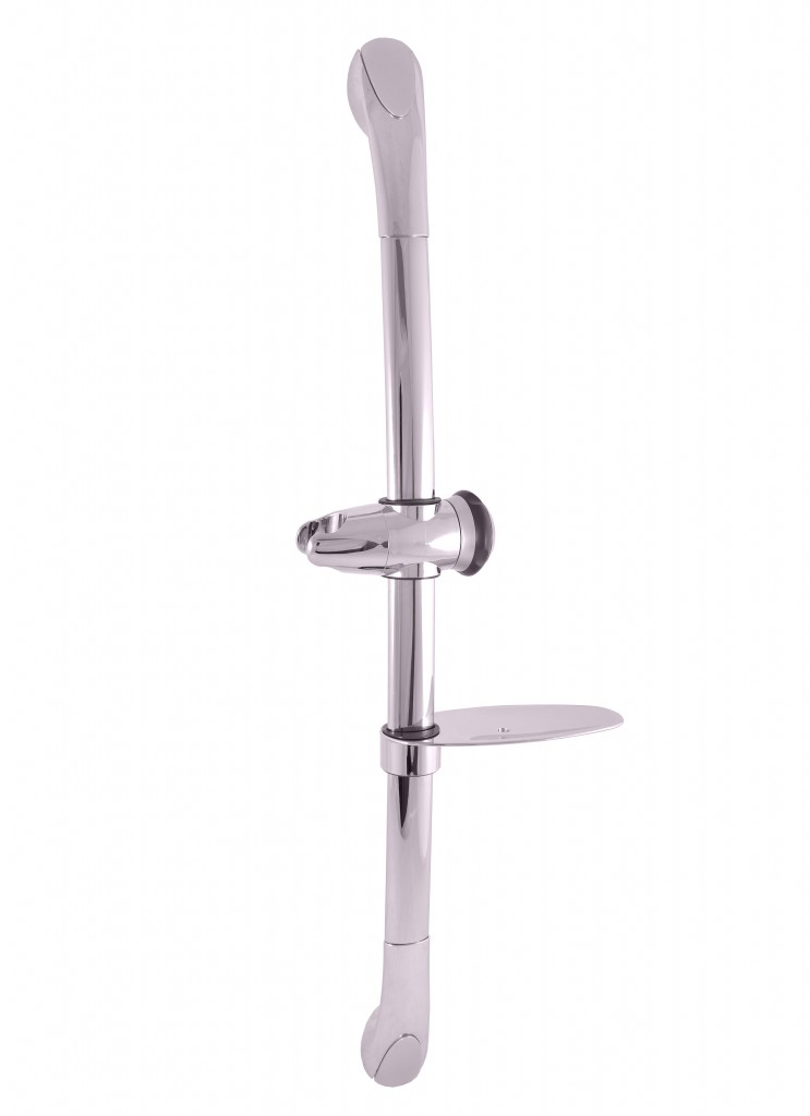 Sprchová tyč s posuvným držákem sprchy a mýdlenkou.