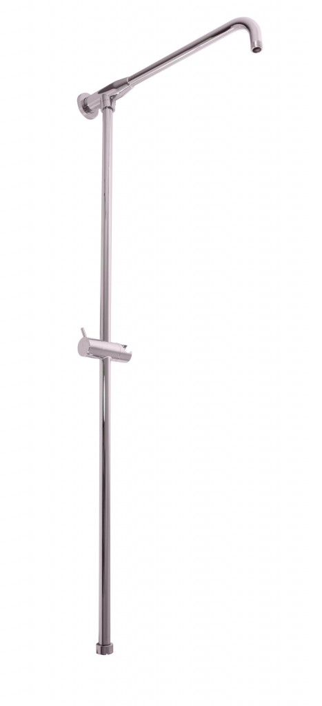 Teleskopická sprchová tyč k baterii s hlavovou a ruční sprchou.