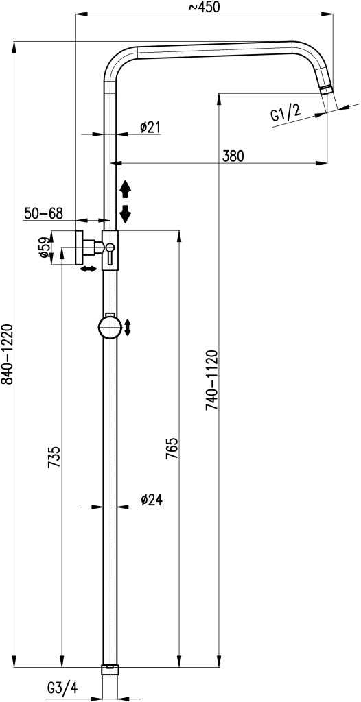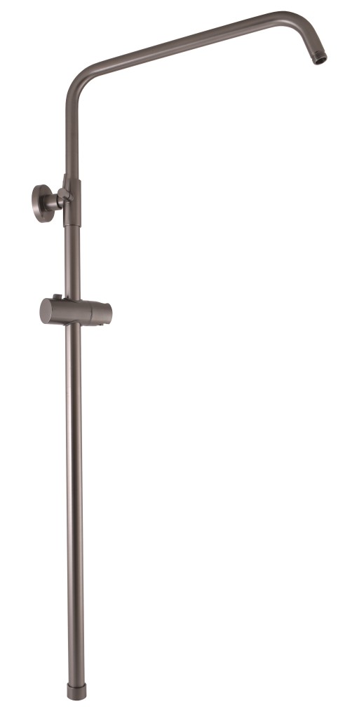 Teleskopická sprchová tyč k baterii s hlavovou a ruční sprchou, metal grey - kartáčovaná.