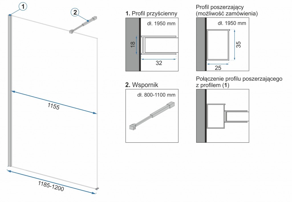 - Horní část je jištěna výsuvnou konzolí, kotvenou do stěny, pomocí které nastavíte požadovanou velikost sprchového koutu.