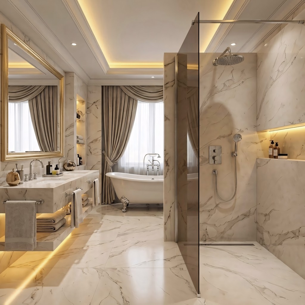 Sprchové zástěny Walk-In, kombinují eleganci s praktičností. Nabízíme je v různých barevných variantách profilů a vzpěr – chrom, zlato, kartáčované zlato, titan, černá i měď – aby dokonale ladily s vaší koupelnou. Tabule skel jsou k dispozici v klasickém čirém, hnědém a šedém provedení.