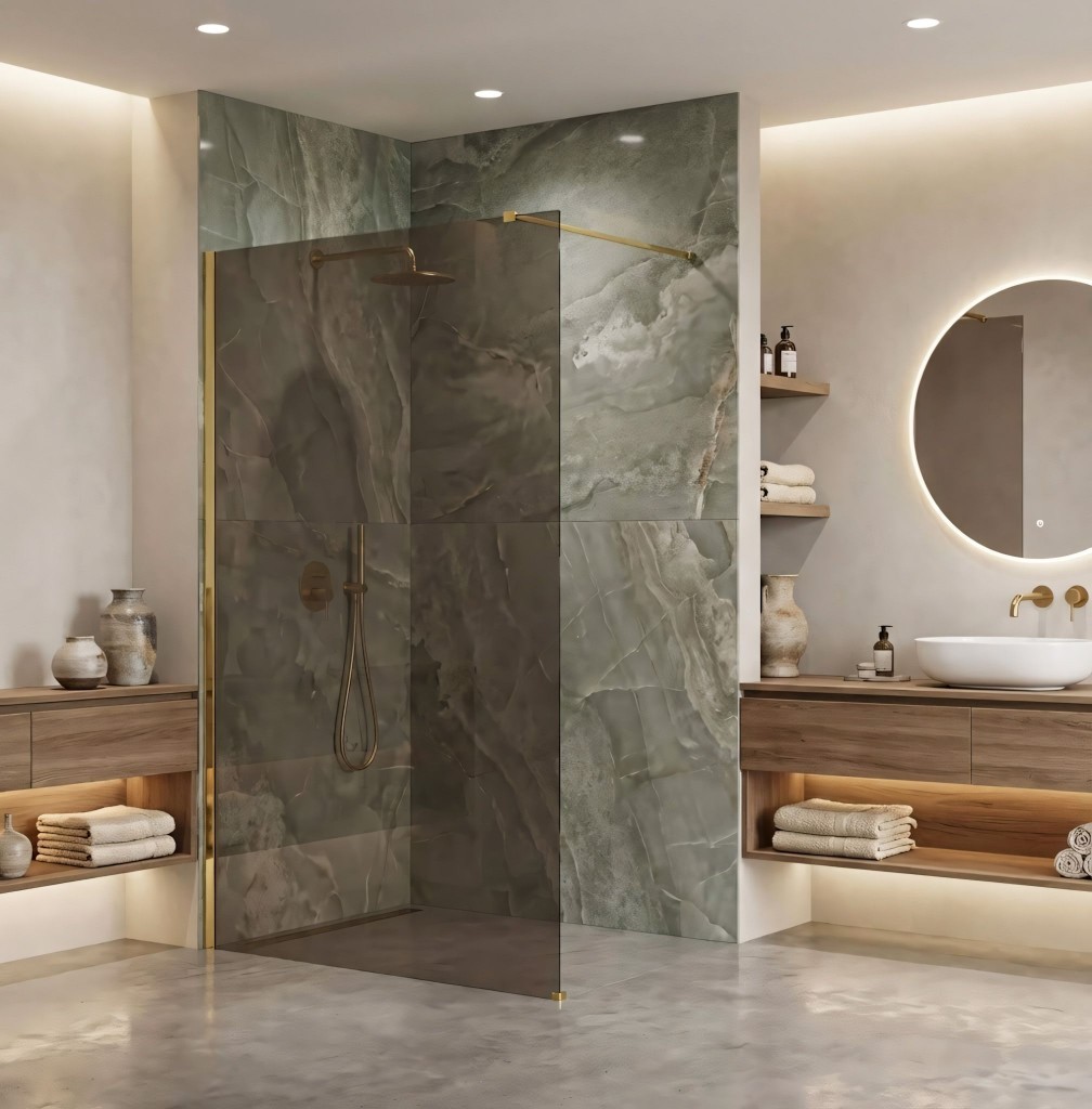 Sprchové zástěny Walk-In, kombinují eleganci s praktičností. Nabízíme je v různých barevných variantách profilů a vzpěr – chrom, zlato, kartáčované zlato, titan, černá i měď – aby dokonale ladily s vaší koupelnou. Tabule skel jsou k dispozici v klasickém čirém, hnědém a šedém provedení.