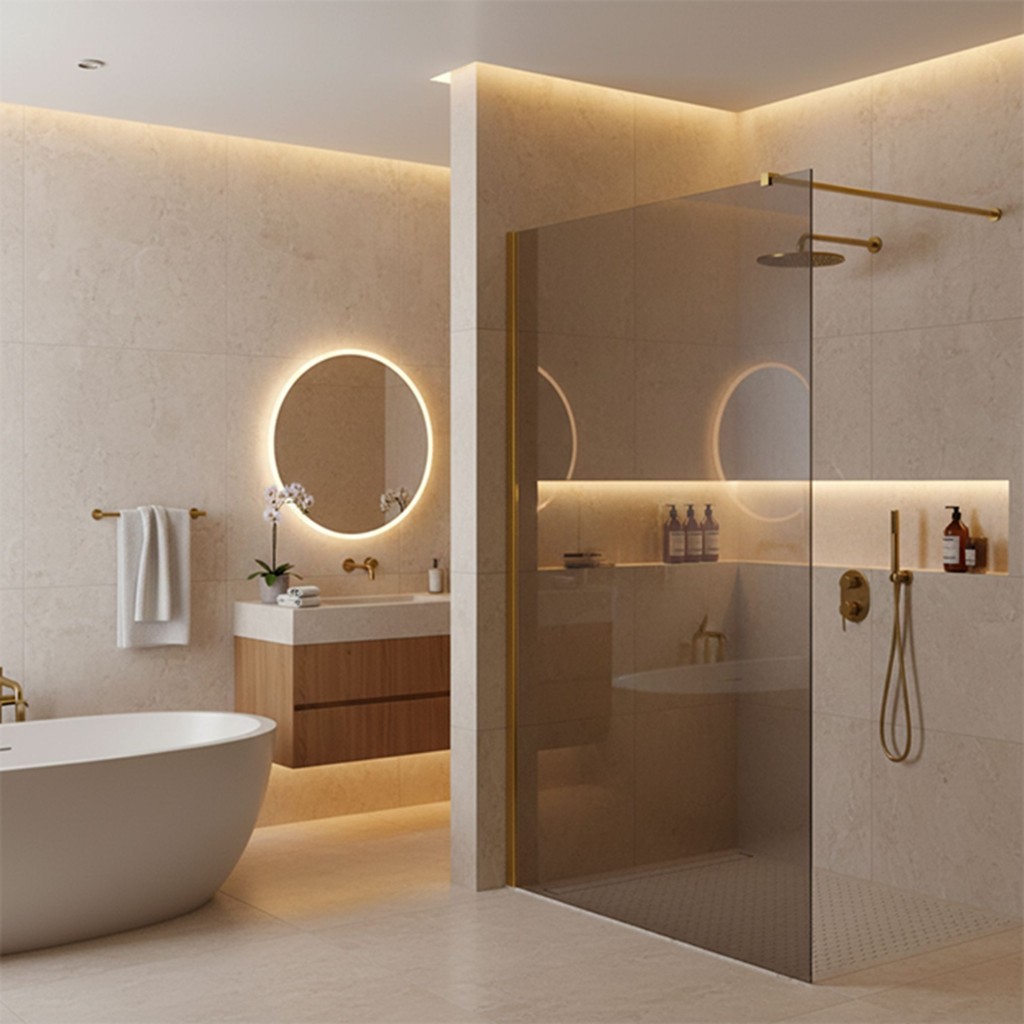 Sprchové zástěny Walk-In, kombinují eleganci s praktičností. Nabízíme je v různých barevných variantách profilů a vzpěr – chrom, zlato, kartáčované zlato, titan, černá i měď – aby dokonale ladily s vaší koupelnou. Tabule skel jsou k dispozici v klasickém čirém, hnědém a šedém provedení.