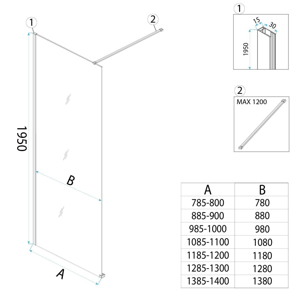 Šíře zástěn lze zvolit od 70 cm až do 140 cm, takže si vyberete ideální rozměr pro jakýkoli sprchový kout.