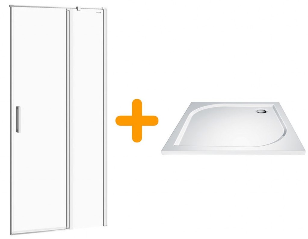 SPRCHOVÉ DVEŘE 90, PRAVÉ TRANSPARENT SKLO + VANIČKA (S162-006-SET1)