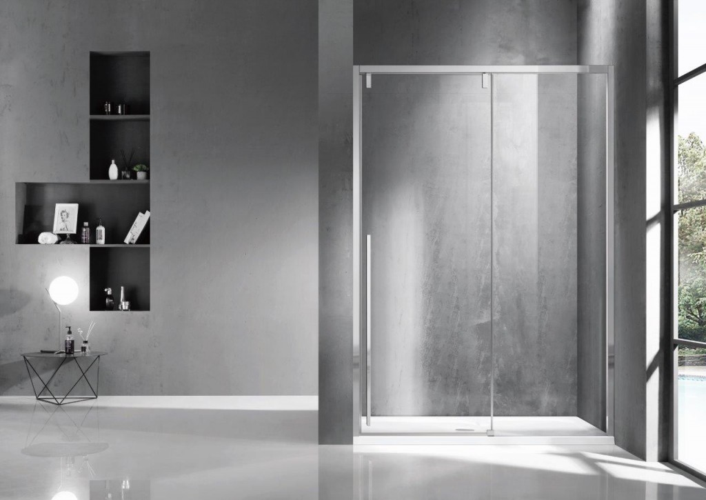 Exkluzivní posuvné skleněné dveře do niky ADRA jsou výjimečné praktickým dovíráním dveří soft-close, který zajistí tiché a jemné zavírání.
