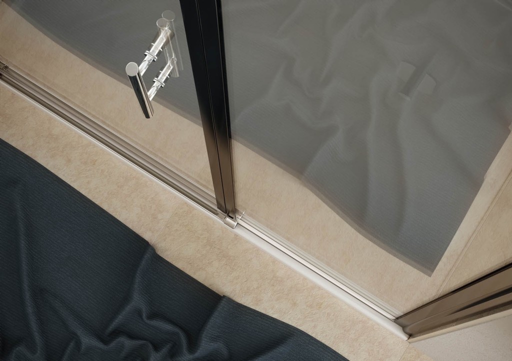 Montáž sprchových dveří je možná jak na vaničku (standardně dodáváno bez vaničky) nebo přímo na podlahu. Při použití přímo na podlahu je velmi elegantním řešením pro odvod vody .