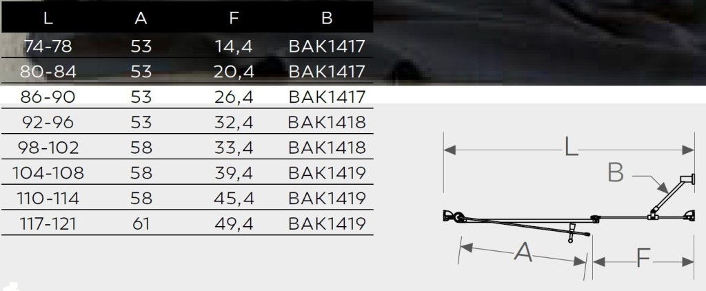 - 117 – 121 × 190 (v) cm, levé provedení (SX) či pravé provedení (DX)