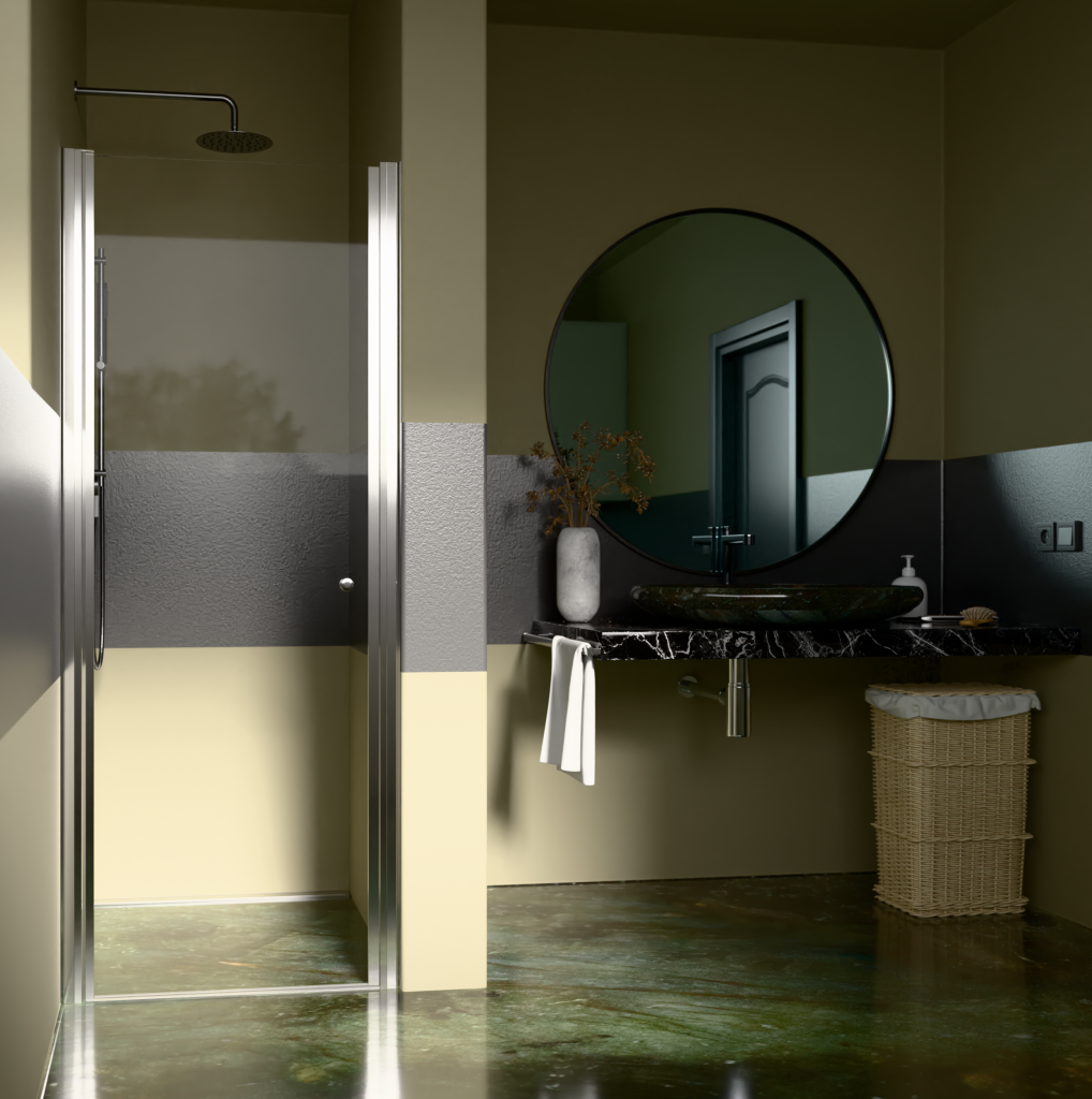 - Bezrámová konstrukce: Dá se využít i jako bezbariérový vstup do sprchového koutu.