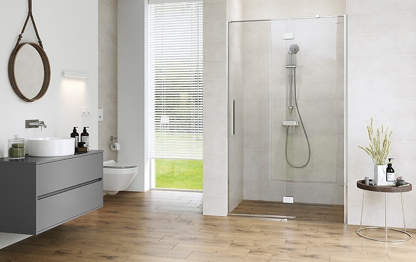 Křídlové sprchové dveře CREA od výrobce CERSANIT se vyrábějí v pravém a levém provedení a velikostech 90, 100 a 120 cm.