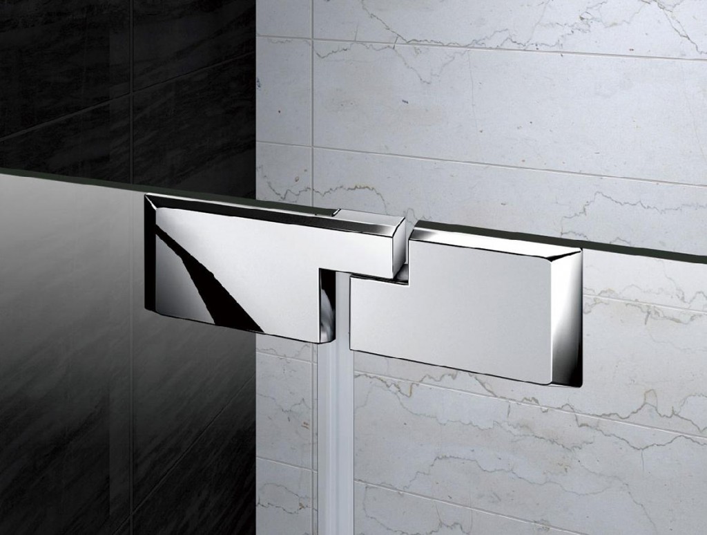 Chromové panty zapuštěné zevnitř zároveň se sklem pro snadnou údržbu