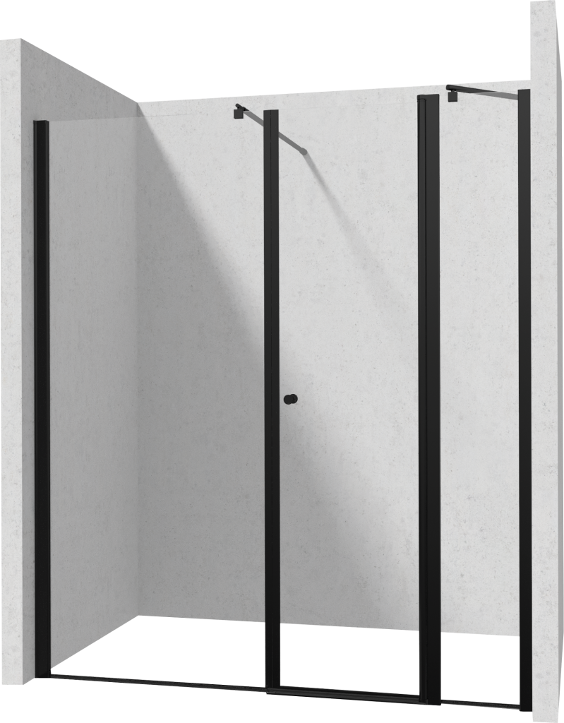 Sprchové dveře KERRIA PLUS výšky 2000 mm s pevným polem a dveřmi otevíranými pouze ven v kombinaci s pevnou stěnou. Jako výplň je použito transparentní sklo o síle 6 mm, které je podrobeno procesem kalení, kdy se sklo stává tvrdším, pružnějším a odolnějším. Sprchová zástěna je pokryta vrstvou Active Cover, která má hydrofobní vlastnosti. Nejsou zde žádné nevzhledné skvrny a čištění není potřeba tak často. V nabídce jsou rámy chromové nebo v matném černém provedení.