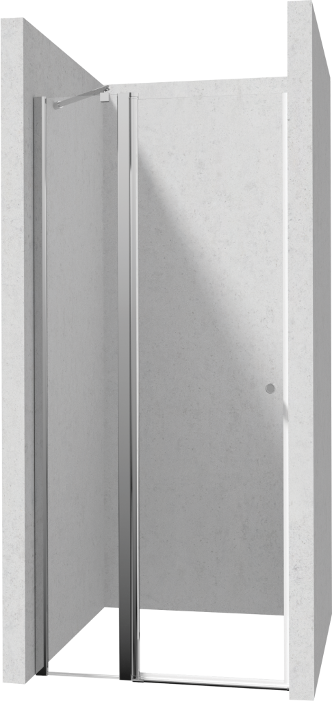 Sprchové dveře KERRIA PLUS výšky 2000 mm se stěnovým profilem, pevným polem a dveřmi otevíranými pouze ven. Jako výplň je použito transparentní sklo o síle 6 mm, které je podrobeno procesem kalení, kdy se sklo stává tvrdším, pružnějším a odolnějším. Sprchová zástěna je pokryta vrstvou Active Cover, která má hydrofobní vlastnosti. Nejsou zde žádné nevzhledné skvrny a čištění není potřeba tak často. V nabídce jsou rámy chromové nebo v matném černém provedení.