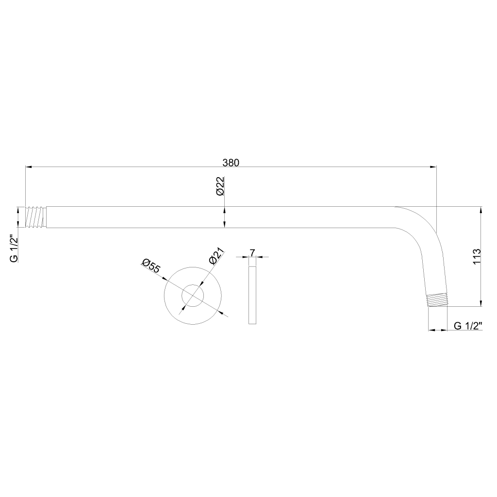 Sprchové rameno z nerezové oceli s montáží na stěnu.