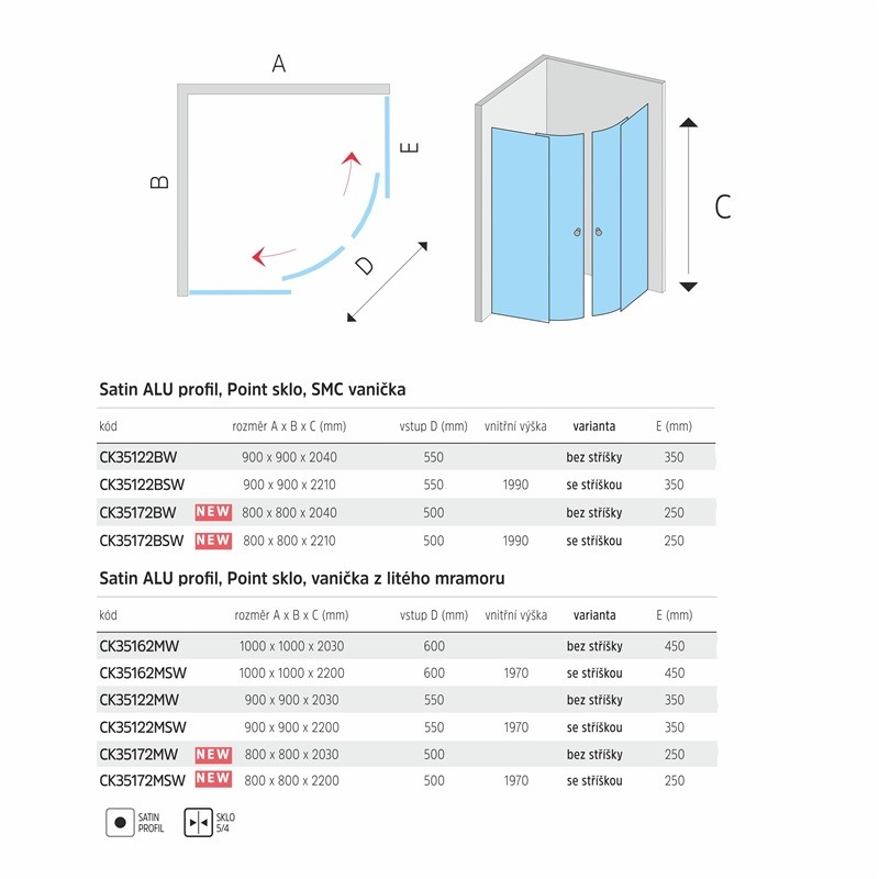 Sprchový box vnáší do ekonomické třídy nový rozměr kvality. Sklo je v designu Point, satin ALU profil. Tloušťka bezpečnostního skla je 5/4 mm. Sklo je dokonale utěsněno silikonovými lištami. Sprchový kout je osazen posuvnými dveřmi, které mají kvalitní pojezdy s možností perfektního seřízení. Dorazy zajišťují minimální nárazy při otevírání a zavírání sprchového koutu.